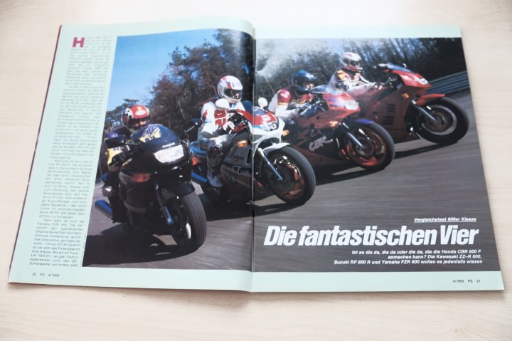 Suzuki RF 600 mit 98PS besser als Kawasaki ZZ-R 600 mit 100PS, Honda CBR 600 F mit 98PS und Yamaha FZR 600 mit 91PS? Toller Vergleich auf 8 Seiten