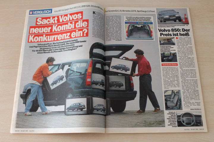 Opel Omega 2.6i Caravan Travel mit 150PS besser als Audi 100 2.6 E Avant mit 150PS, BMW 520i touring mit 150PS, Citroen XM Kombi Turbo C.T. mit 141PS, Ford Scorpio Turnier GLX 2.9i mit 145PS, Mercedes 220 TE mit 150PS und Volvo 850 GLE Kombi mit 140PS? Toller Vergleich auf 7 Seiten